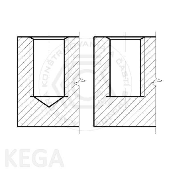 Obr. 10.13 - Zobrazenie závitu, ktorého koniec je blízko dna otvoru, na výkresoch zostáv