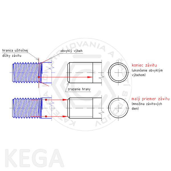 Obr. 10.7 - Postup kreslenia vonkajších závitov