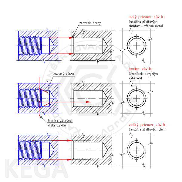 Obr. 10.10 - Zobrazovanie zakrytého vnútorného závitu