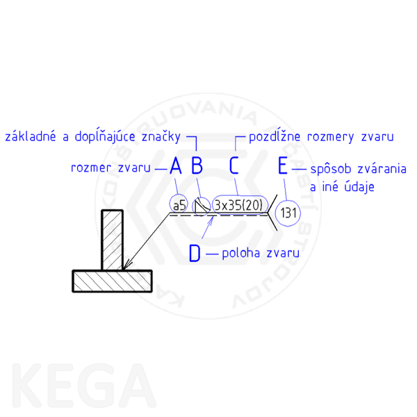 Obr. 12.8 - Umiestnenie údajov o zvare na odkazovej čiare