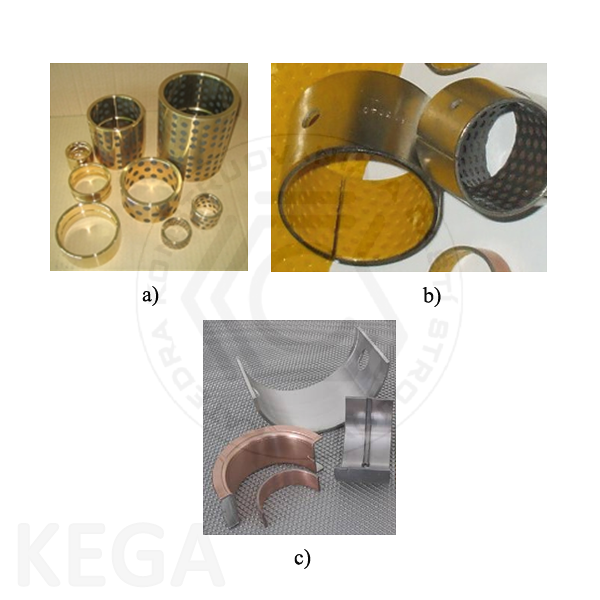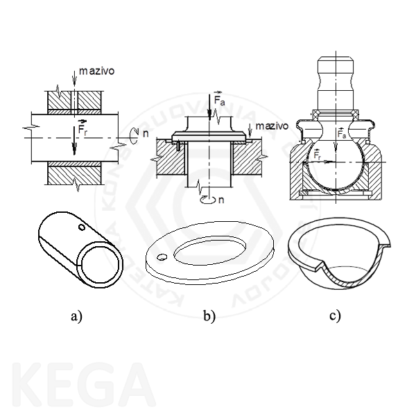 Obr. 13.2 - Klzné ložiská: a)-radiálne, b)-axiálne, c)-kombinované