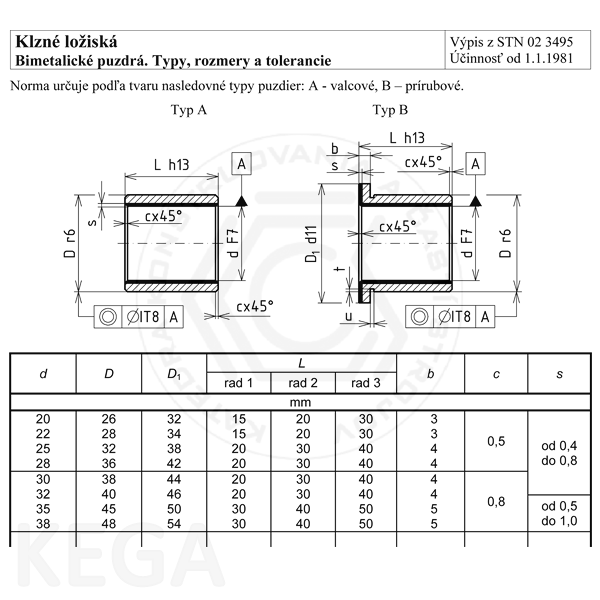Obr. 13.4 - Ukážka údajov o ložisku v norme STN 02 3495