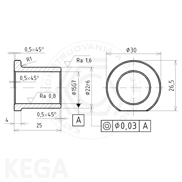 Obr. 13.5 - Výkres nenormalizovaného monometalického ložiskového puzdra